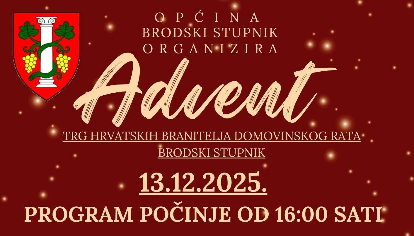 Općina Brodski Stupnik i ove godine priprema poseban adventski doživljaj za svoje mještane i posjetitelje. Adventsko druženje održat će se 13. prosinca 2025. na Trgu hrvatskih branitelja Domovinskog rata u Brodskom Stupniku, a cjelokupni program započinje već u 16:00 sati.