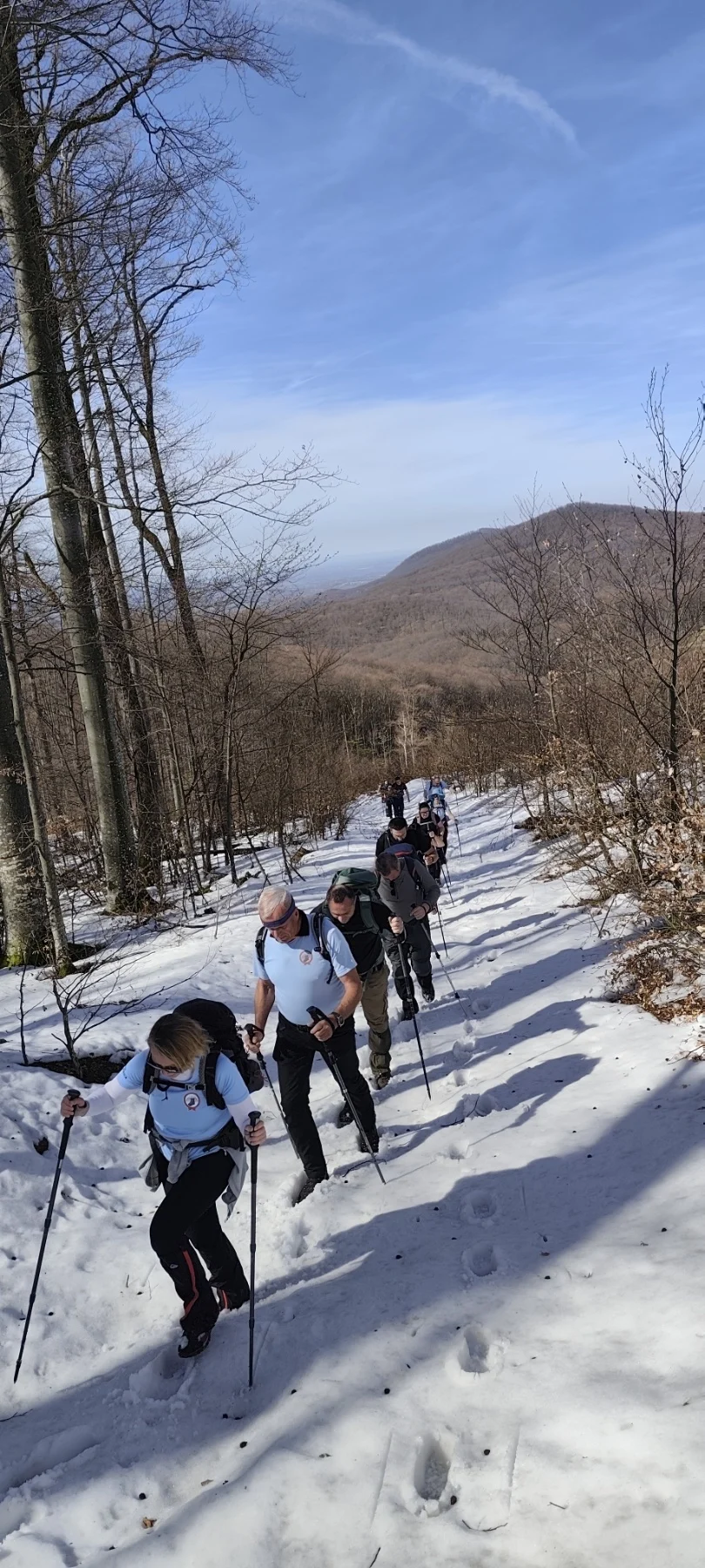 Skupina od 15 planinara okupila se na Petrovom vrhu, od kojih su neki krenuli iz Požege, neki iz okolnih mjesta. Sve skupa ih je dočekala vodička Ines Žužinjak u dogovoreno vrijeme u 08.30 sati na parkiralištu ispred planinarskog doma Petrov vrh te su nakon kratkih priprema i službenog vodičkog govora zakoračili na stazu. Predivan sunčan dan pratio ih je na stazi prema gore i dodatno podizao raspoloženje. Put ih je vodio pored upečatljivog Vranog kamena, a s obzirom na toplinu sunca i uspon grupa je radila češće, ali kraće pauze kako bi svi održali dobar ritam i uživali u prirodi. No, kako to u planini biva, uvjeti su se ubrzo promijenili. Nakon polovice prijeđenog puta, proljetnu stazu zamijenili su duboki snijeg i bljuzga. Ova promjena podloge učinila je stazu klizavom i teškom za hodanje, što je značajno otežalo kretanje. Svejedno grupa je hrabro prihvatila izazov te je uz međusobnu podršku i strpljenje uspješno svladala sve prepreke i stigla do cilja.