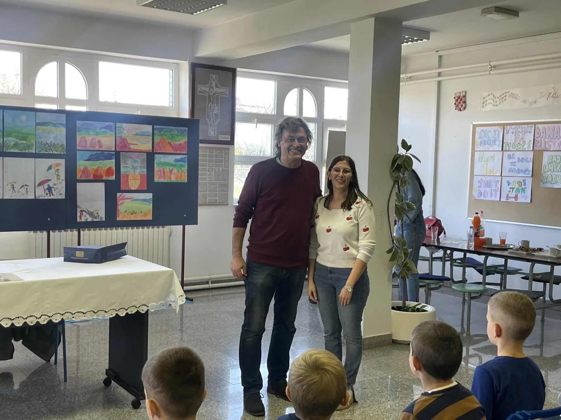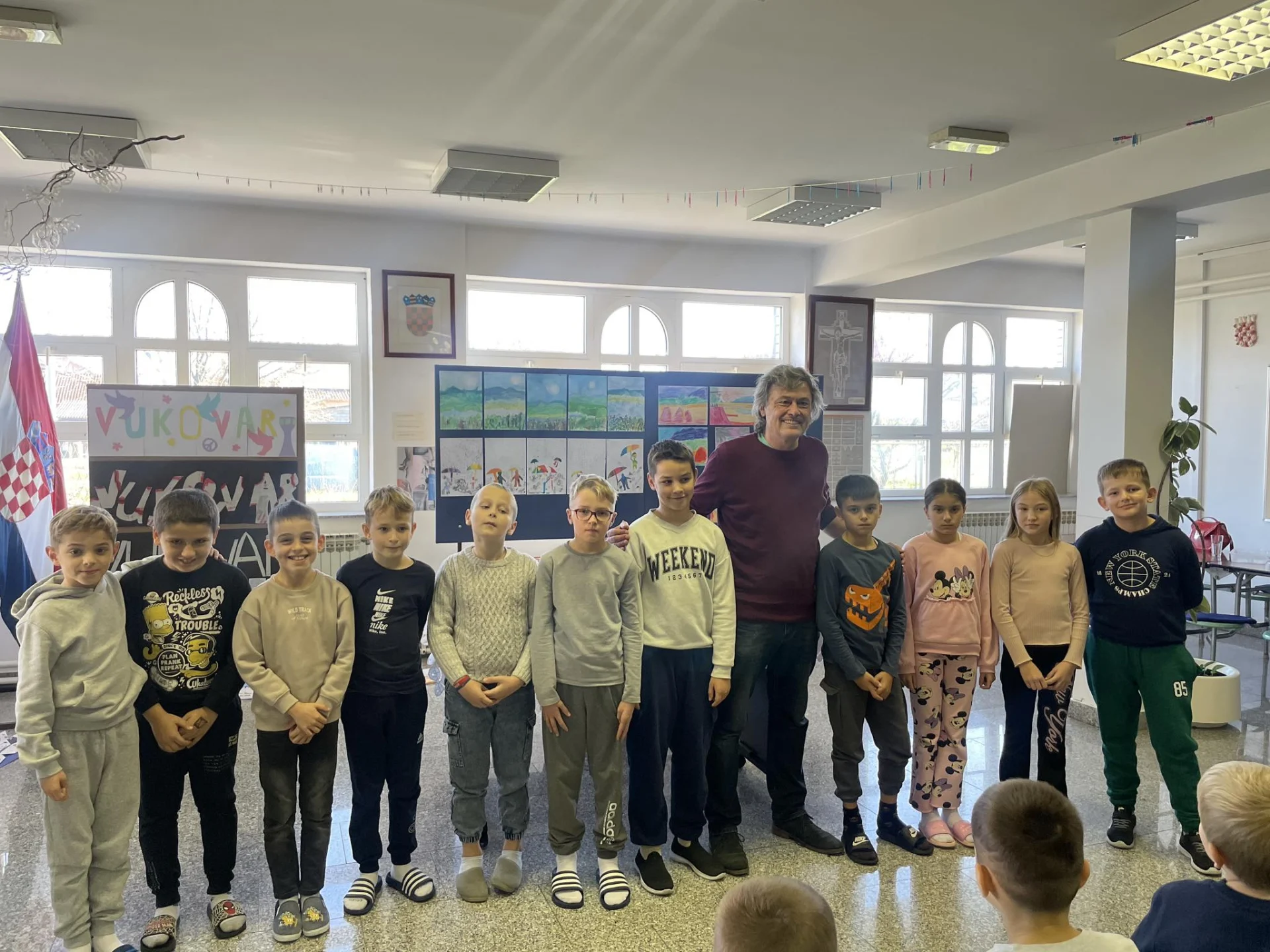 U ozračju listopadsko-studenog slavlja pisane riječi, u sklopu Mjeseca hrvatske knjige, Područna škola Slavonski Kobaš 14. studenoga 2025. pretvorila se u živopisnu pozornicu susreta jedne posebne vrste — onog između djece i knjige, posredstvom njezina tvorca. Ugledni književnik Hrvoje Kovačević, majstor dječjeg detektivskog romana i autor koji je generacije mladih čitatelja uveo u čaroliju misterija, došao je ondje gdje se ljubav prema književnosti rađa najspontanije: među učenike nižih razreda.
