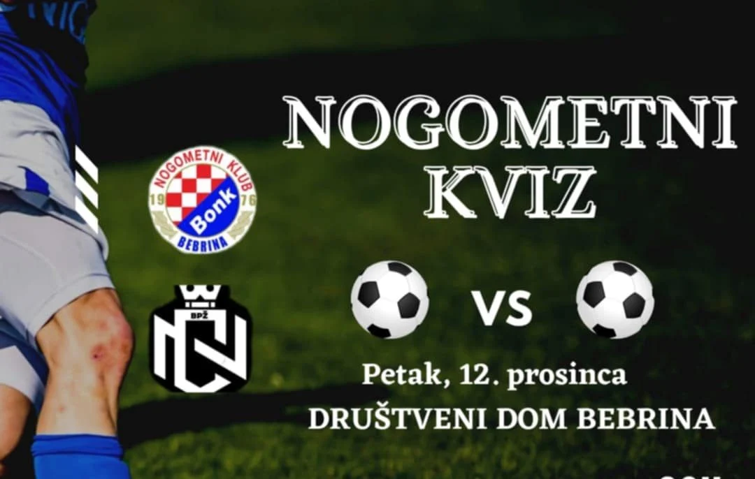 Bebrinski društveni dom pretvorit će se u pravu nogometnu arenu znanja! U petak, 12. prosinca, ljubitelji najvažnije sporedne stvari na svijetu okupljaju se na Nogometnom kvizu koji organiziraju Nogometne čarolije u suradnji s NK Bonkom. Početak je zakazan za 20 sati, a ekipe već sada spremaju svoje taktičke planove — ovaj put ne za travnjak, nego za stol.