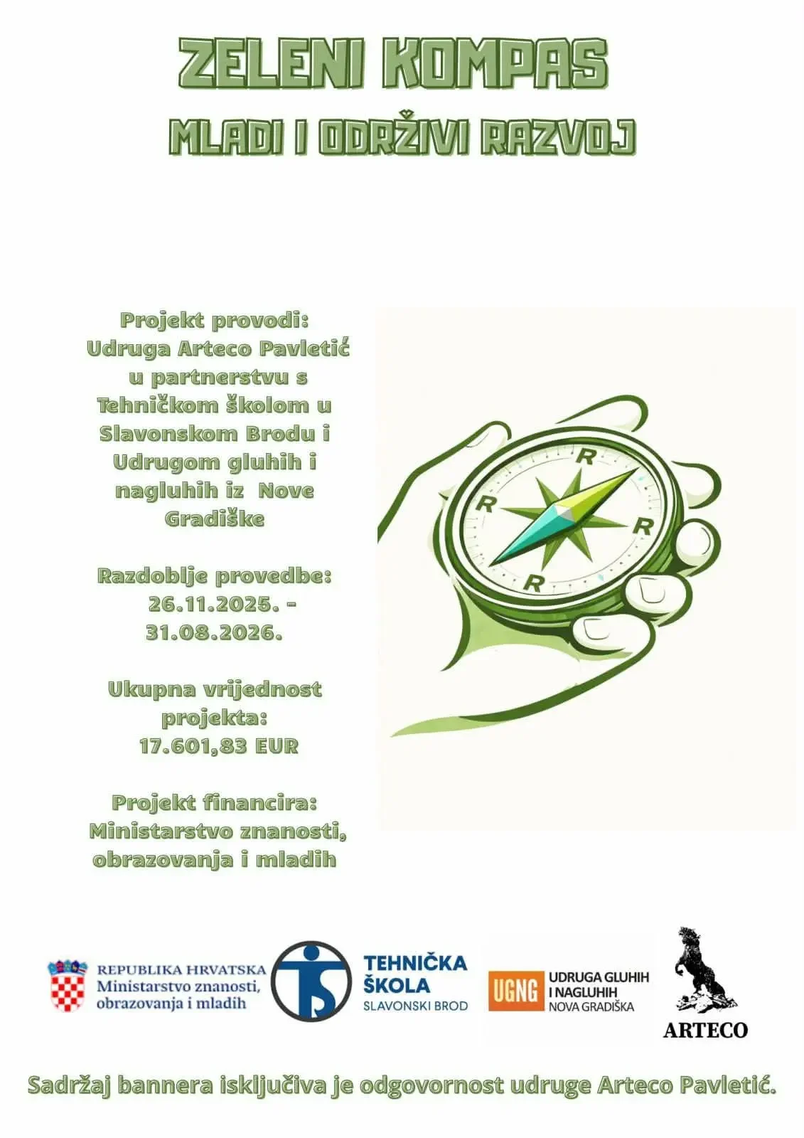 Nositelj projekta je udruga Arteco, dok su partneri na projektu Tehnička škola Slavonski Brod i Udruga gluhih Nova Gradiška. Među prisutnima su bili predstavnici oba partnerska subjekta, kao i predstavnici udruga Studio B te Žene s osmijehom, čime je dodatno naglašena važnost međusektorske suradnje.