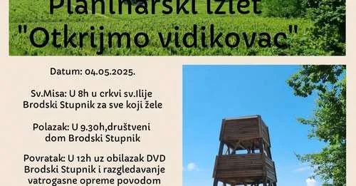 Brodskom Stupniku predstoji nezaboravan planinarski izlet pod nazivom “Otkrijmo vidikovac”, koji će se održati u nedjelju, 4. svibnja 2025. godine. Organizatori pozivaju sve ljubitelje prirode, planinarenja i dobre zabave da im se pridruže u istraživanju ljepota ovog kraja.