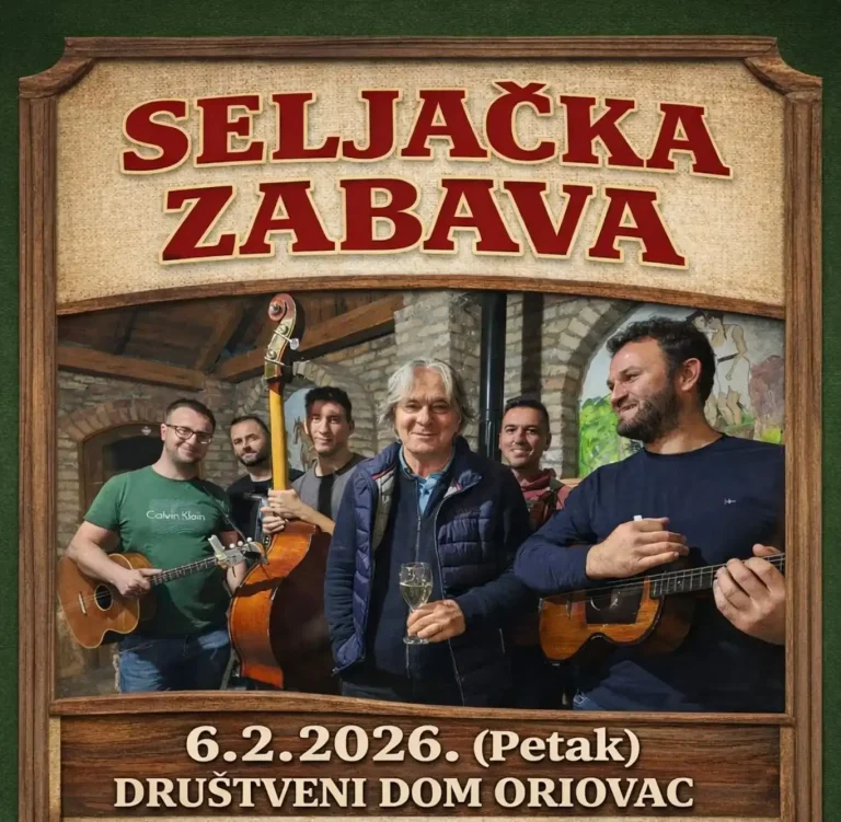 Oriovac će u petak, 6. veljače 2026. godine, biti domaćin tradicionalne Seljačke zabave, koja će se održati u Društvenom domu Oriovac s početkom u 19 sati. Ovaj događaj okuplja ljubitelje slavonske tradicije, glazbe i druženja, a organizatori najavljuju bogat i sadržajan program.