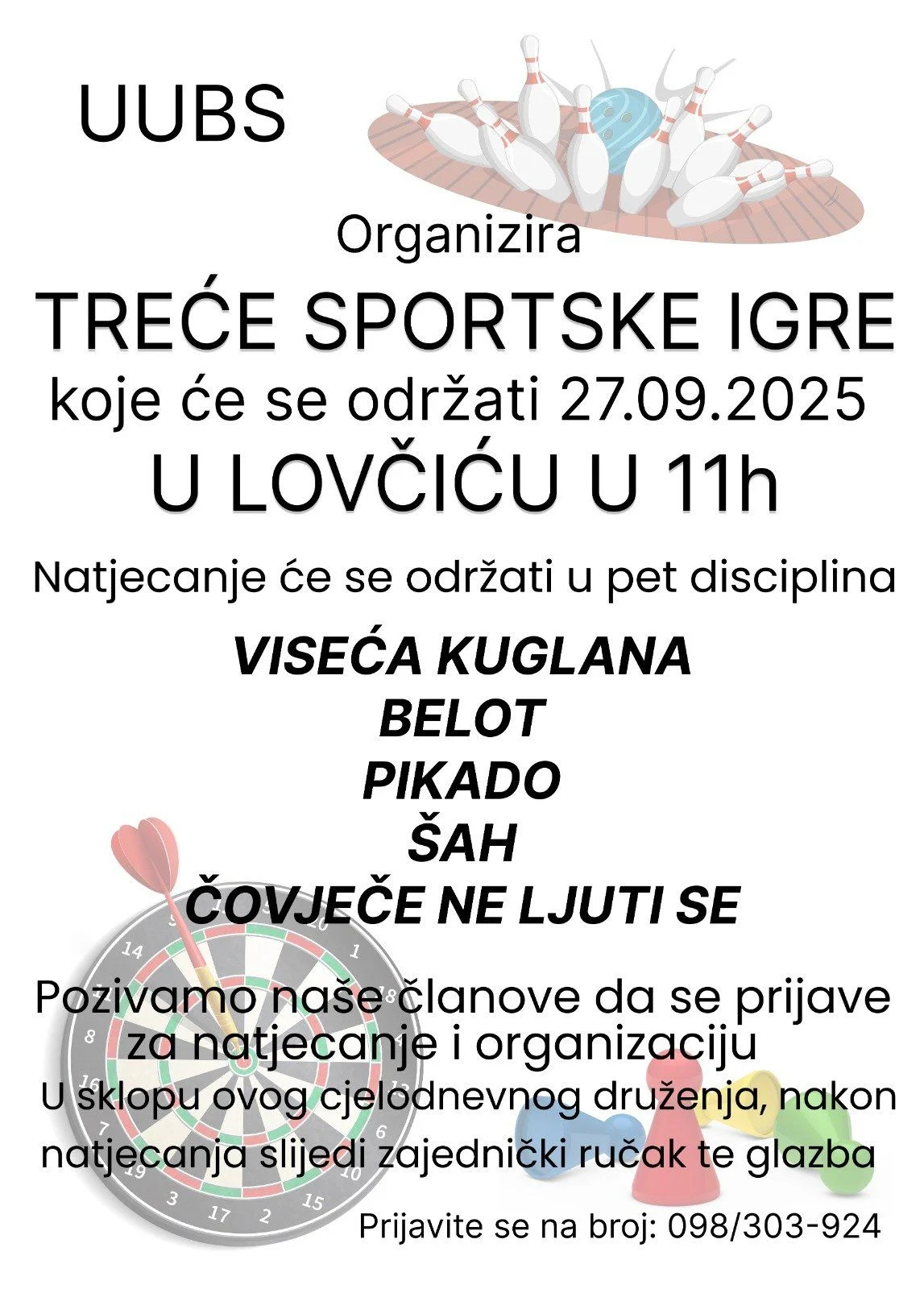 Udruga UUBS organizira Treće sportske igre, koje će se održati u subotu, 27. rujna 2025. godine, s početkom u 11 sati u Lovčiću.